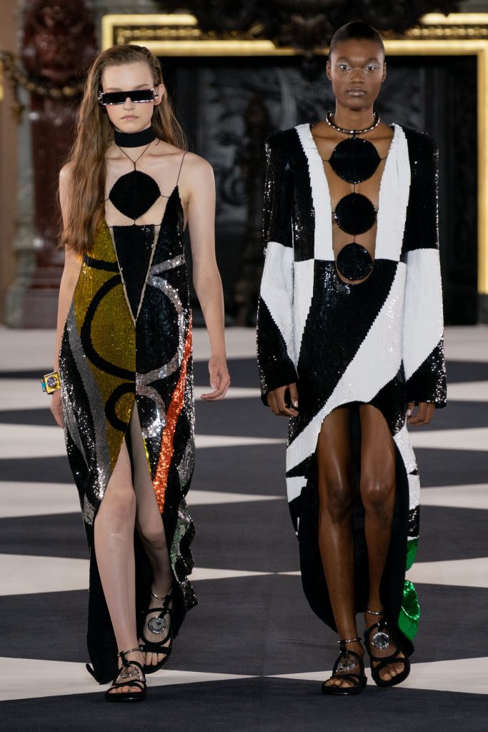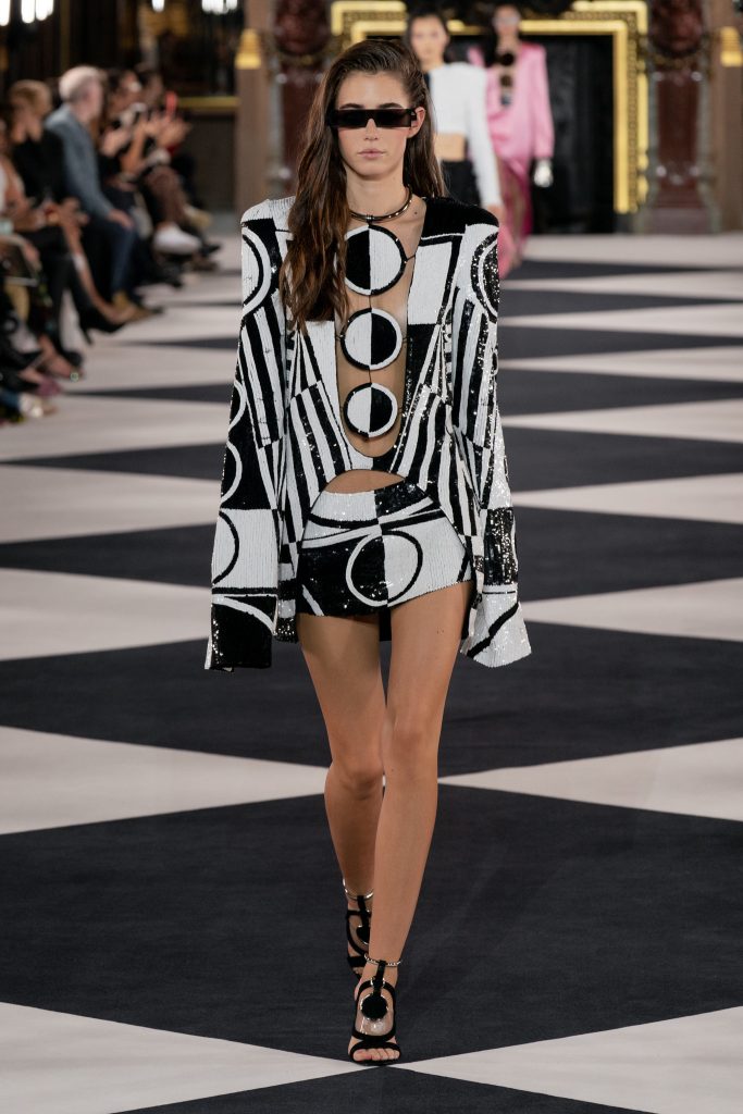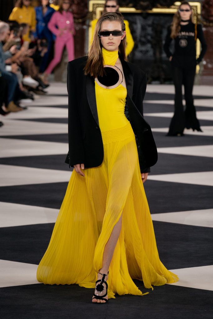 Como ya es recurrente, los colores llamativos han marcado la pauta esta temporada, y Balmain no se queda atrás mostrando piezas amarillas, verdes y rosadas para estar a tono con la estación de las flores. En contraste, y para mantener la línea de la marca, duotono blanco y negro destacan en piezas con formas geométricas, rayas o combinándolas en medio.