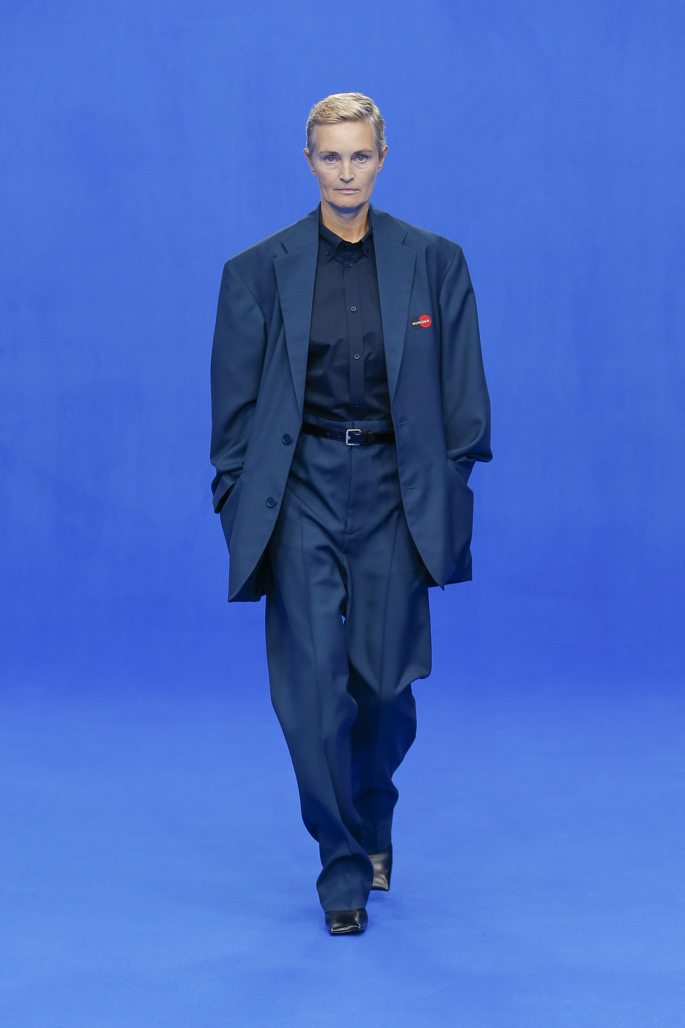 Demna Gvasalia, el director creativo de Balenciaga, contrató a arquitectos, empresarios, profesores, limpiadores, entre otros, para que usaran sus prendas y las exhibieran en una pasarela ovalada de color azul “Unión Europea”.