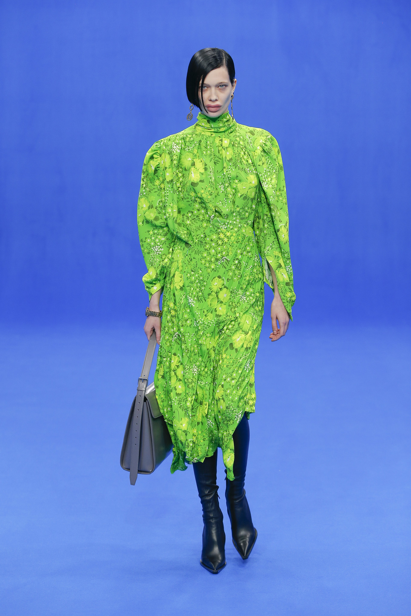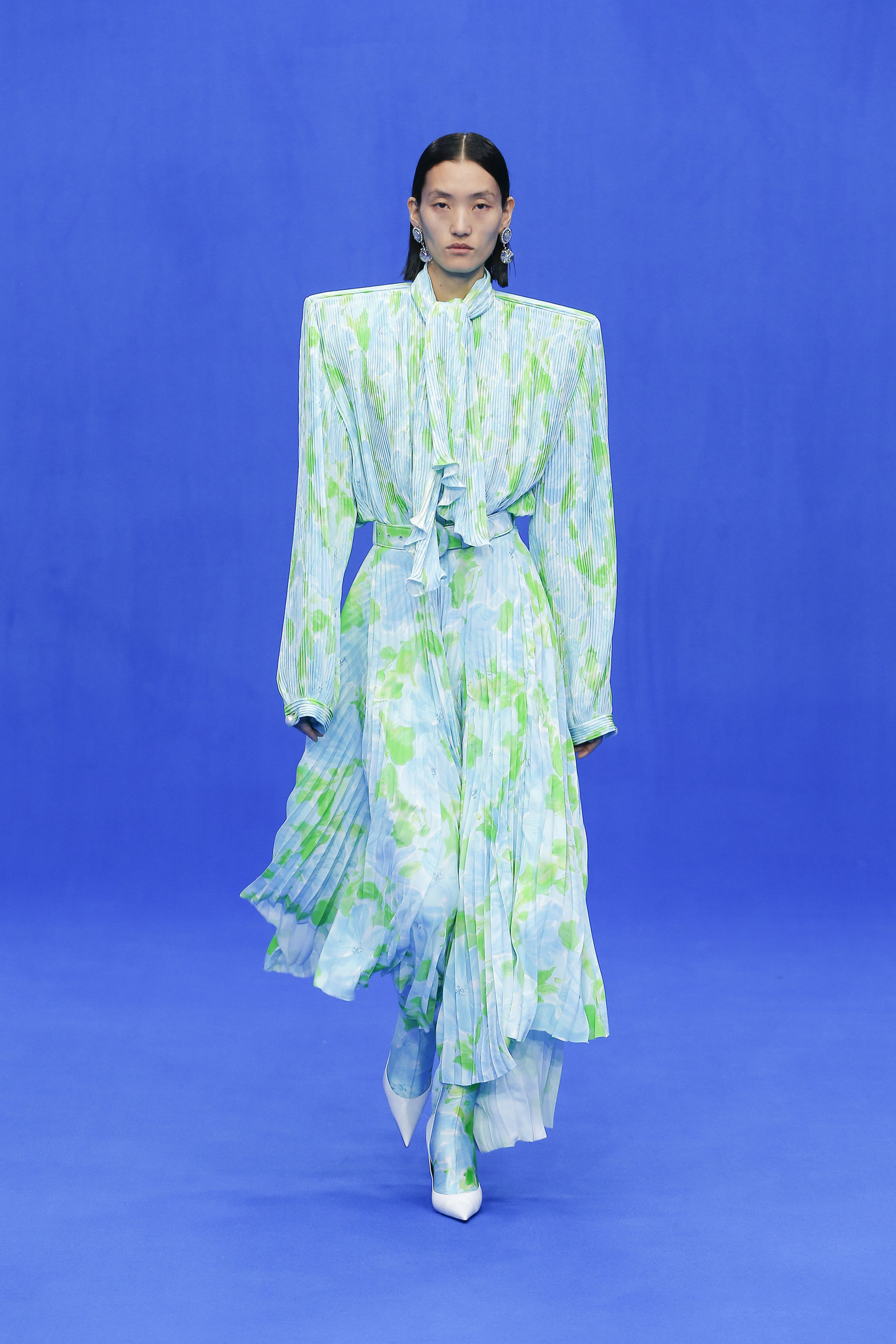 Las prendas de Balenciaga fueron inspiradas en looks que fueron tendencia entre finales de la década de los 80 y principio de los 90. Los cinco más llamativos, fueron elaborados en Lurex plisado en tonos plateado y dorado con lazos de gran tamaño en la parte posterior y tres fueron hechos con terciopelo para usar sobre una crinolina. Casualmente, hicieron referencia al legado de la casa de alta costura, según Gvasalia, quien se sintió optimista sobre el volumen de las siluetas pues para él, se pueden usar “en cualquier entorno”.