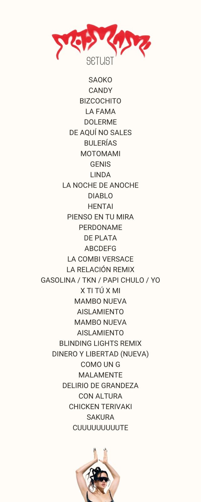 CONOCEL SET LIST DE MOTOMAMI WORLD TOUR