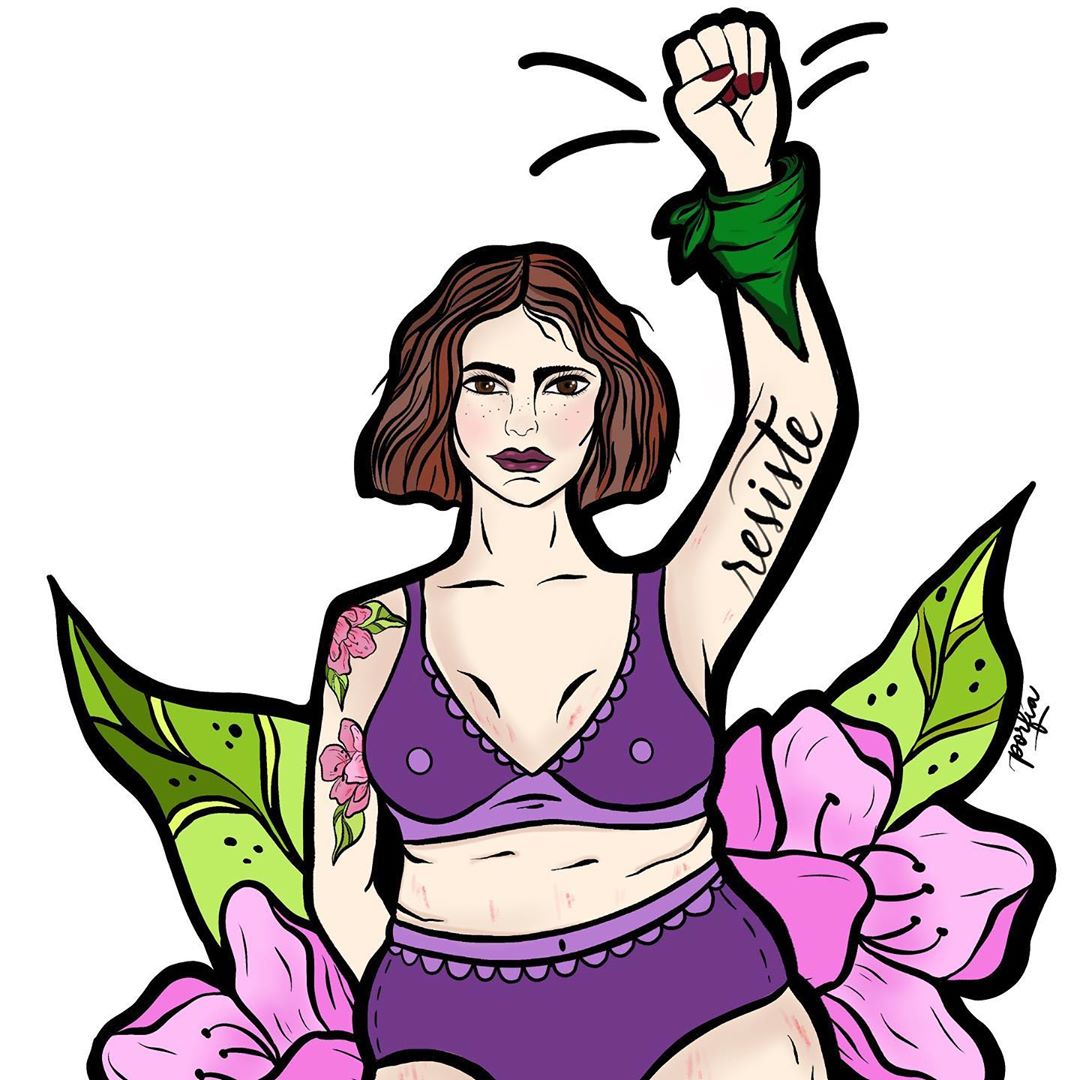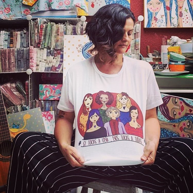 El slogan de @soyporfia es #MuyPower y claro: “Lo que dice tu ropa, es política”. Y es que desde hace un tiempo, su fundadora, Pau Salinas, ha creado #MuyColoridas ilustraciones feministas que hoy son furor en Instagram y por supuesto, en las marchas. Esta idea nació hace un par de años “cuando vi un grupo de mujeres encapuchadas semi desnudas gritándole al mundo que ya no tenían miedo porque eran una manada, eran hermanas”, cuenta. Para Pau, esa imagen fue determinante en su carrera: “tenía que manifestarlo de alguna forma y dejarlo impregnado en algo. Inicialmente fue un dibujo, después una pintura y luego una polera”.